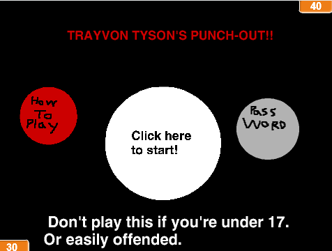 We've covered a tremendous amount of Trayvon Tyson's Punch-Out!! here. We've produced not only the game, but an advertisement video, strategy guides, and even a behind-the-scenes perspective on the origins of the game, which also included an analysis of some of the controversial themes in it. Later up in this article, we'll present yet more coverage of the game, so keep reading. (I'm not reproducing links to those things because they are all in the main Trayvon Tyson's Punch-Out!! page.)