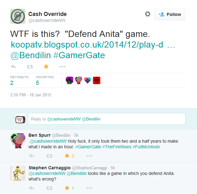 Also, it looks like we're finally gaining traction with being recognised by #GamerGate and Bendilin himself. Great! This new advertisement video should help with that.