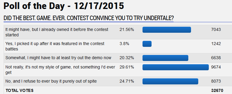 I don't really know what goes on in the minds of tumblr people. They really are missed up. I will say notably, that pro Super Smash Bros. Melee players Toph and Scar literally betrayed Melee and actually rallied for Undertale to win. Scar having just finished Undertale the day before. He claimed it had a huge effect on his life. I'm not sure how one can claim that when you haven't lived enough of your life to know.