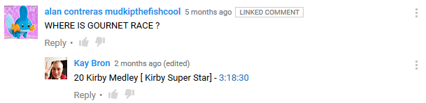 Kirby fans favorite song Gourmet Race YouTube comment